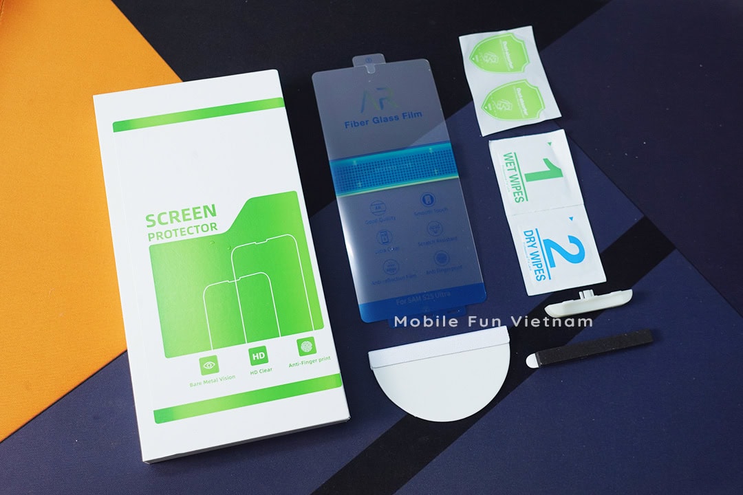 Dán chống chói AR mặt trước. Thanh kẹp cố định và bộ dụng cụ vệ sinh hỗ trợ cho khách hàng tự dán tại nhà